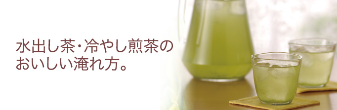 普通の煎茶と同じ手順で、少し濃いめに作ります。 グラスに氷を入れその上からお茶を注いで急冷します。 色や香りも涼しげで、渋味も少ない涼しい飲み物です。